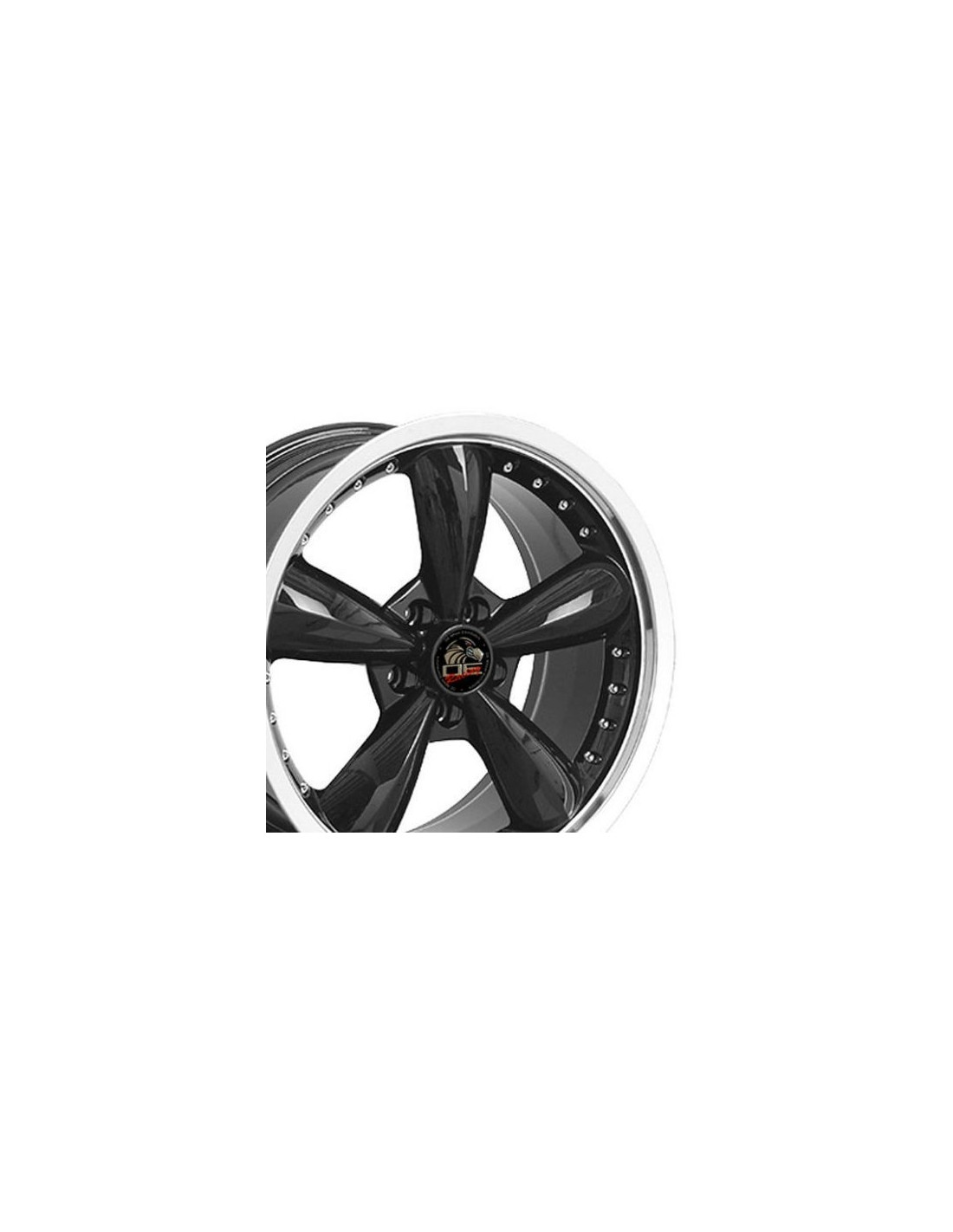 20 ' Mustang 2005 2014 Bullitt Wheels Deep Dish - Black machined lip with rivets 20x10 / 20x8.5 SET