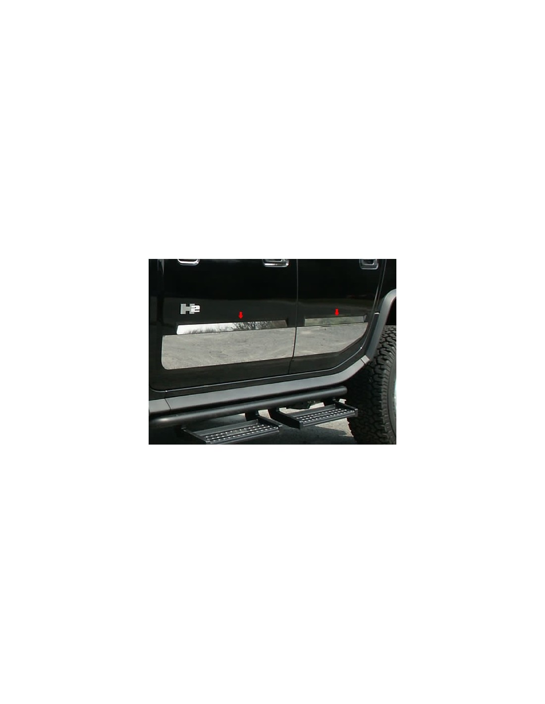 Vestir su Hummer H2 con algunas inserciones de las puertas de la Calidad Accesorios para automóviles. Construido de alto grado, de acero inoxidable resistente a la corrosión, esta moldura de la puerta de inserción proporciona una apariencia nueva y elegante, con un acabado pulido brillante, espejo para las miradas y durabilidad superiores. Cada inserto puerta 4-pc conjunto se instala fácilmente sin necesidad de herramientas utilizando el adhesivo previamente aplicado, de grado automotriz, lo que permite el ajuste a retirarse en cualquier momento sin dañar la pintura.