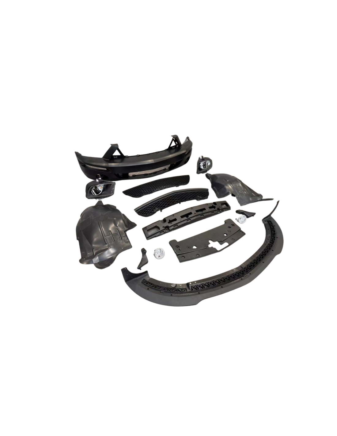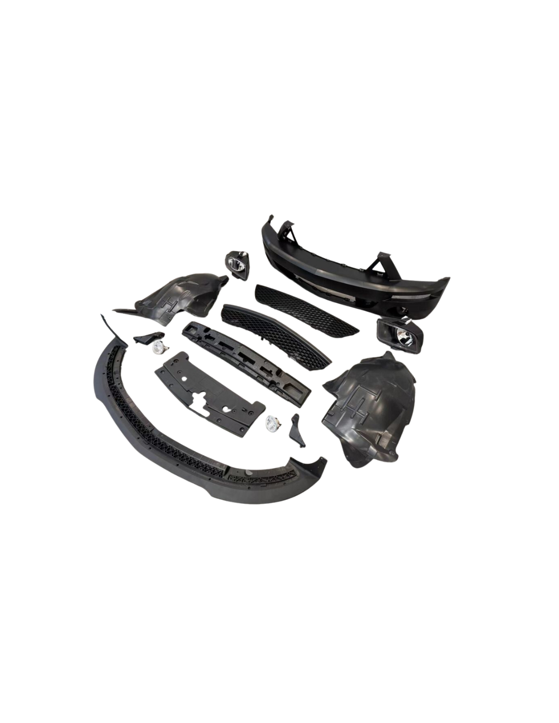 Conjunto completo – incluye parachoques delantero, parrillas, divisor, revestimientos de guardabarros, amortiguador, cubierta del radiador, faros delanteros y faros antiniebla Se envía sin pintar (acabado crudo) – permite una combinación de colores personalizada con su vehículo; Se recomienda probar el ajuste de todos los componentes antes de pintar. Compatibilidad – Compatible con todos los modelos Ford Mustang de 2005 a 2009, independientemente del motor